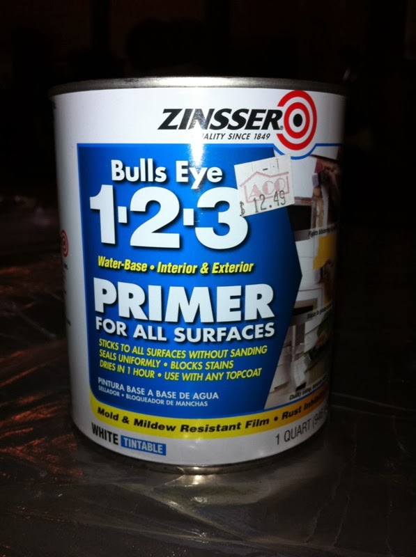 After a lot of sanding, I primed the pieces. It put on two coats of Zinsser Primer. It is amazing. A lot of people use KILZ for projects, but I have only had good results with this so I'm sticking to it. It's not very expensive either.